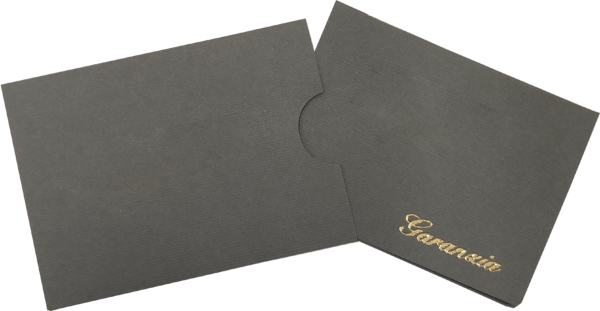 Il set di garanzia più completo e prestigioso per le tue creazioni di alta gioielleria. Composto da un raffinato libretto pieghevole e una custodia protettiva coordinata con fustellatura a mezzaluna per un’estrazione facilitata. Personalizzazione esterna con stampa a caldo metallizzata su cartoncini di pregio. La scelta ideale per chi vuole offrire un documento che attesti valore e professionalità.