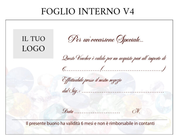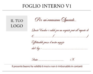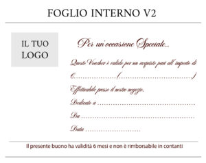 - Interno Personalizzabile: Anch’esso con logo stampato a caldo come la custodia e diverse grafiche disponibili stampate in digitale, con spazi chiari per importo, dedica e validità.Disponibili anche solo i fogli interni di ricambio con la grafica da te scelta e il logo stampato a caldo cliccando qui CER AL R.
