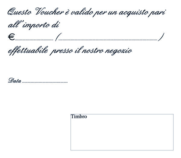- Interno: Stampa digitale nitida con layout “Voucher” (spazio per importo, data, firma e timbro del negozio).