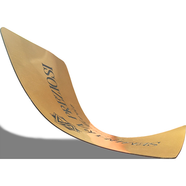 Eleganti targhette adesive in acrilico sottile (0,4 mm), flessibili e ultra-resistenti. Uniscono l’estetica del metallo alla praticità dell’adesivo forte. Incisione laser inclusa, disponibili in Oro o Argento spazzolato in vari formati. Ideali per premiazioni, gadget e personalizzazione di packaging.