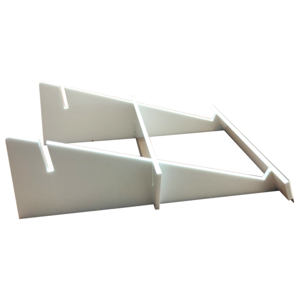 La base del sistema è un espositore in plexiglass da 5 mm, robusto e dal design moderno. La sua struttura a incastro in cinque pezzi lo rende facile da montare e stabile.