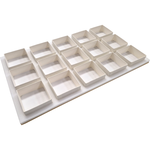 15 scomparti: con astucci 6×6 cm (ideale per anelli o orecchini).